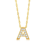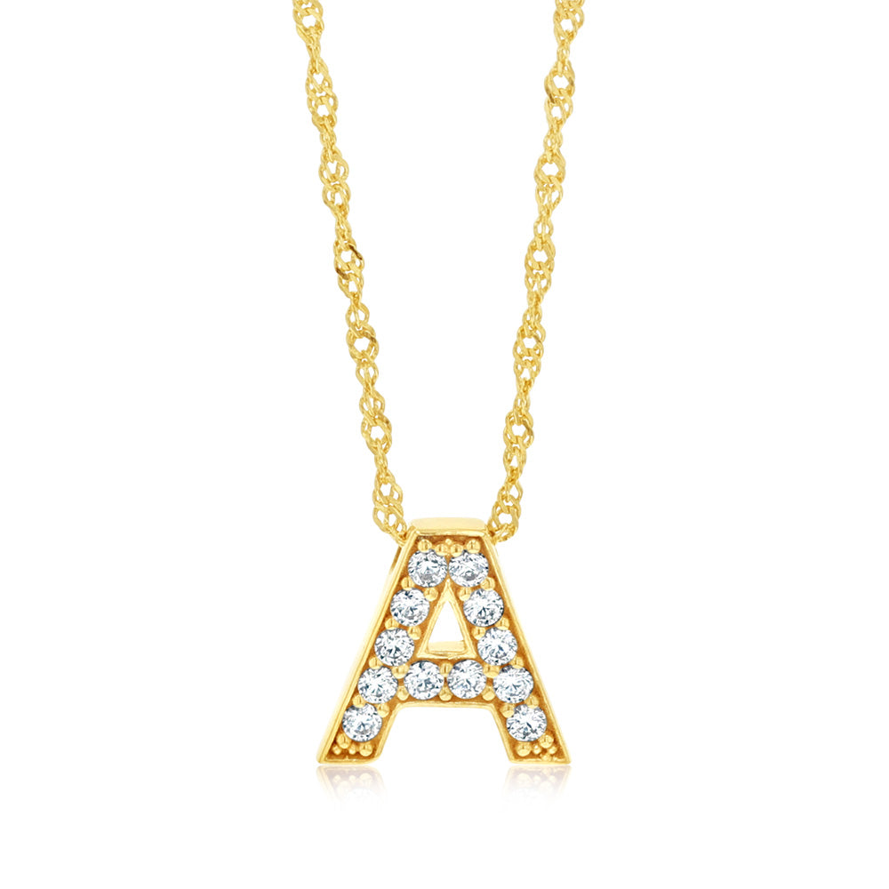 9ct Yellow Gold Silverfilled Cubic Zirconia Initial Letter "A" Pendant On Chain