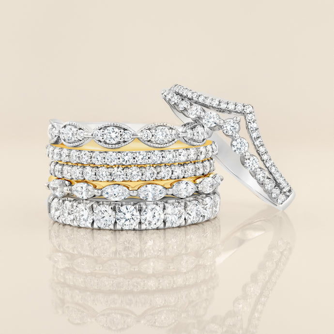 Stacking Rings are a current popular trend in the jewellery world. They offer a versatile and stylish way to add your own personality to your jewellery style. Stacking rings can be worn on their own or layered together for a dramatic effect. Stacking rings are a great choice for pairing with engagement rings and wedding bands. Stacking rings gives you the ability to be creative and fun with your rings.