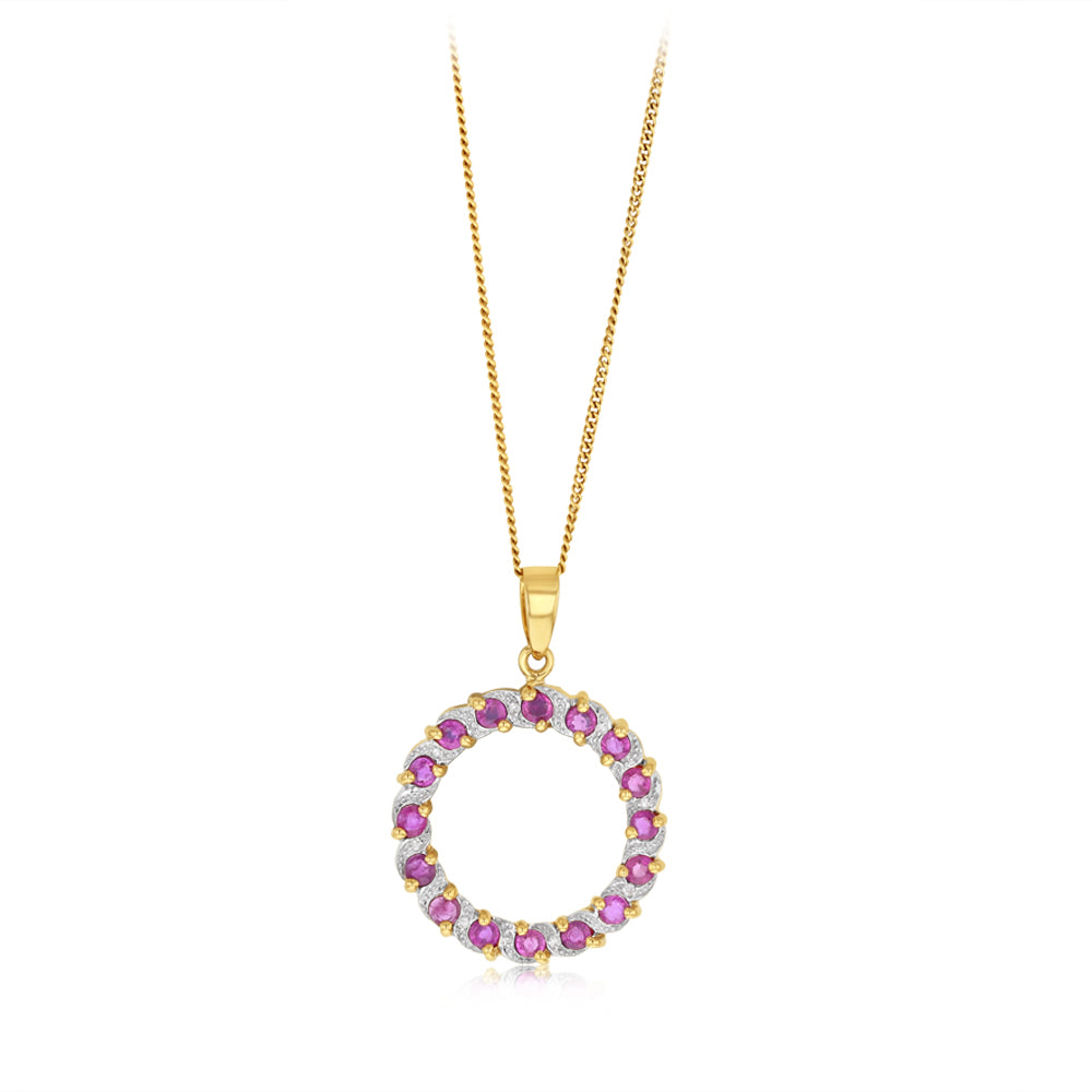 1 Carat Ruby and Diamond Circle Pendant in 9ct Yellow Gold