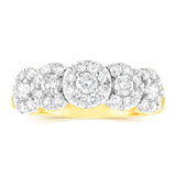 14ct Yellow Gold 0.95 Carat Diamond Ring with 5 Round Brilliant Cut Diamonds Surrounded by Diamond Halos