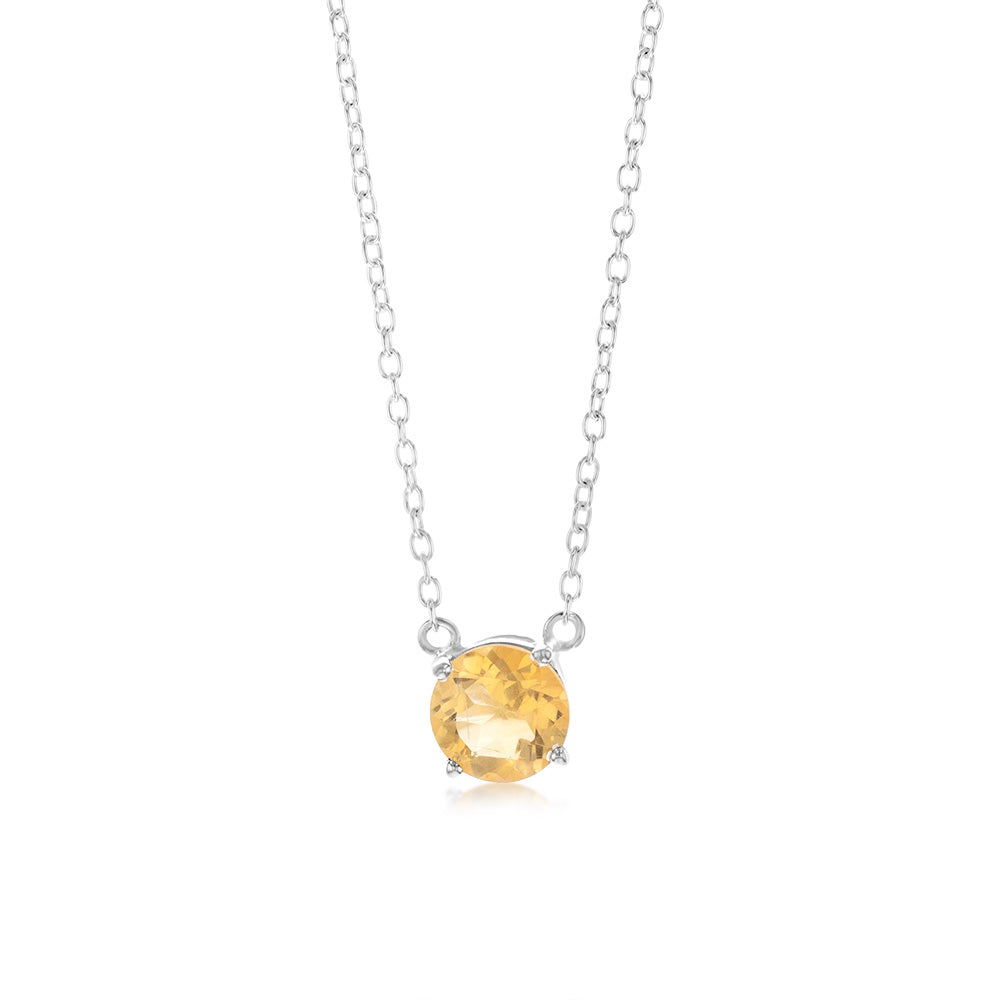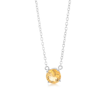7mm Natural Citrine Pendant in Sterling Silver with Chain