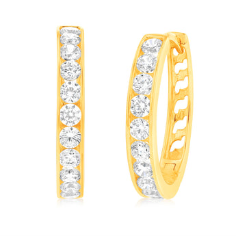 9ct Radiant Yellow Gold Cubic Zirconia Hoop Earrings