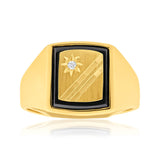 9ct Radiant Yellow Gold Diamond + Onyx Ring