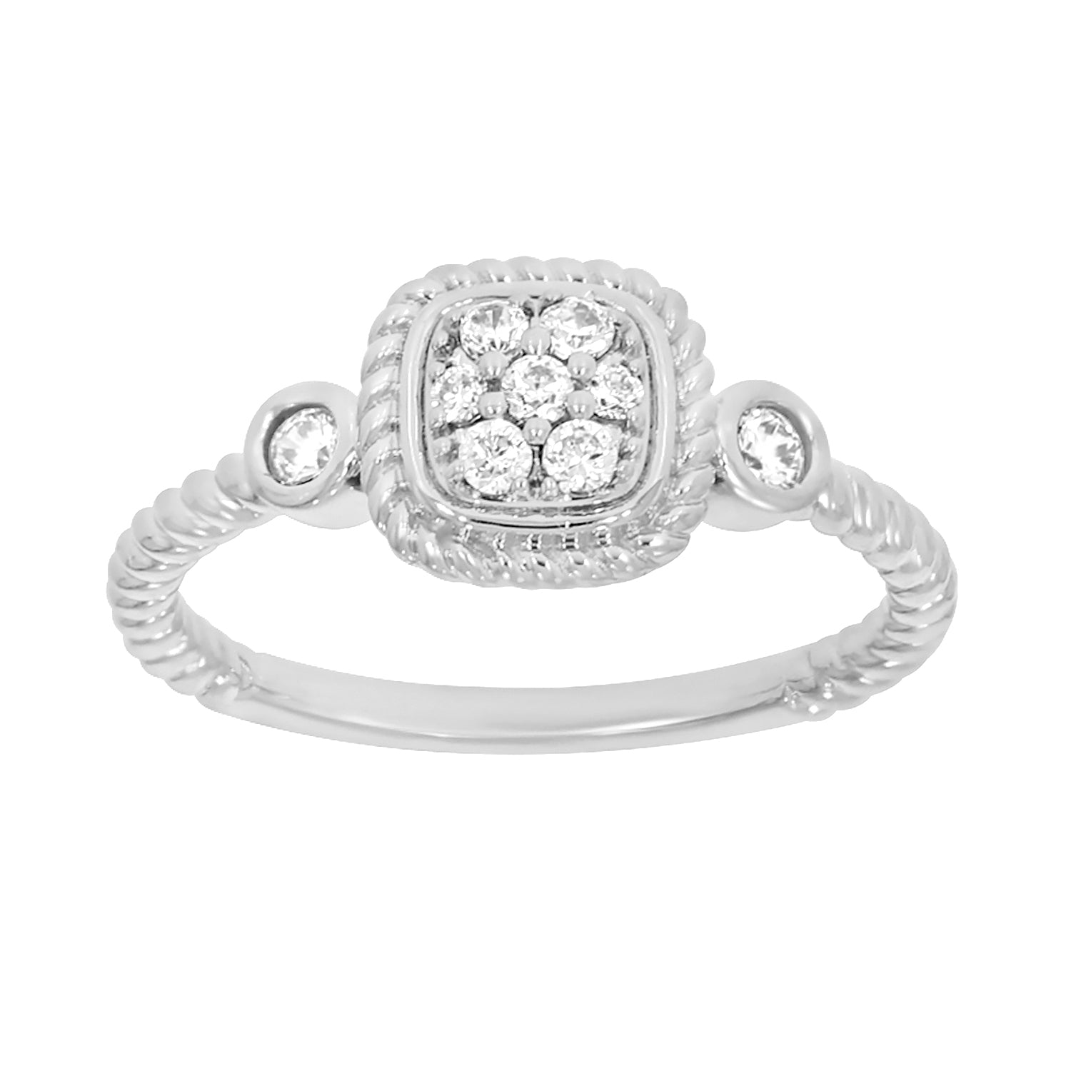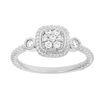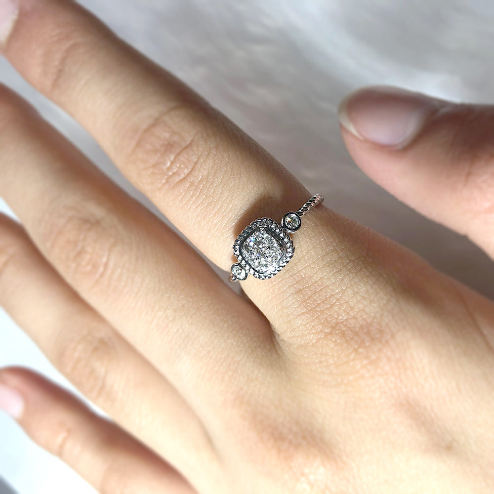 9ct White Gold Cushion Shape Diamond Ring with 9 Briliiant Diamonds
