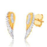 9ct Yellow And White Gold Angel Wings Diamond Cut Stud Earrings