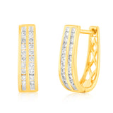 9ct Yellow Gold 1/2 Carat Diamond Double Row Hoop Earrings