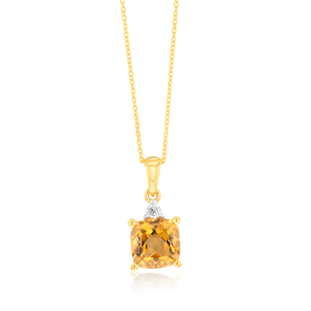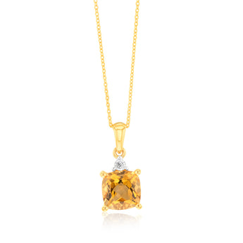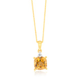 9ct Yellow Gold 1.4ct Citrine and Diamond Pendant On 45cm Chain