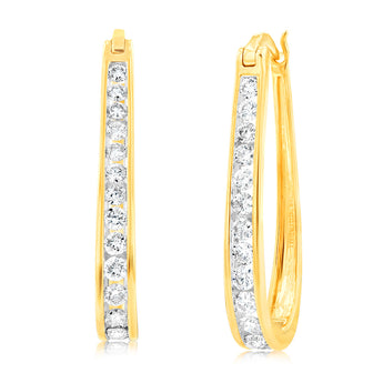 9ct Yellow Gold 1 Carat Channel Set Hoop Earrings with 28 Brilliant Diamonds