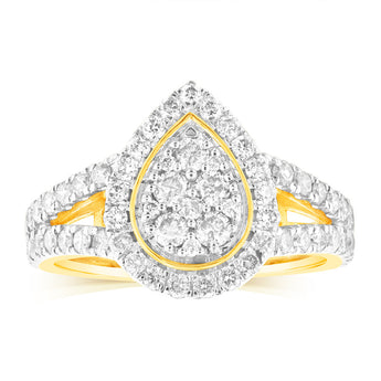 9ct Yellow Gold 1 Carat Diamond Pear Shape Cluster Split Shank Ring