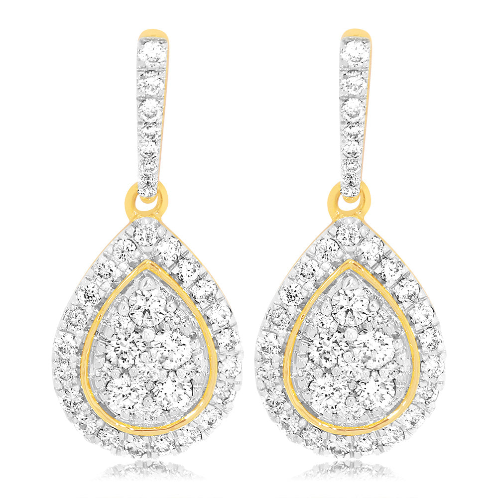 9ct Yellow Gold 1 Carat Diamond Pear Shape Drop Earrings