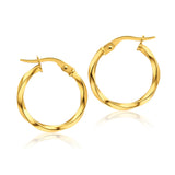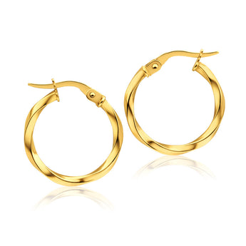 9ct Yellow Gold 15mm Italian Made Twist Hoop Earrings