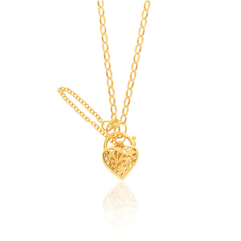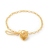 9ct Yellow Gold 19cm Heart Filigree Padlock Bracelet