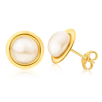 9ct Yellow Gold 7mm Freshwater Pearl Studs