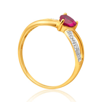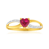 9ct Yellow Gold Alluring Heart Created Ruby + Diamond Ring