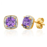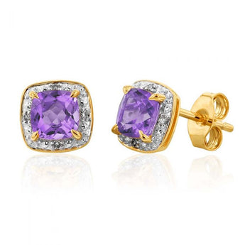 9ct Yellow Gold Amethyst and Diamond Stud Earrings