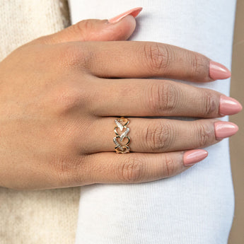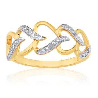 9ct Yellow Gold Carat Interlocking Heart Diamond Ring with 5 Diamonds