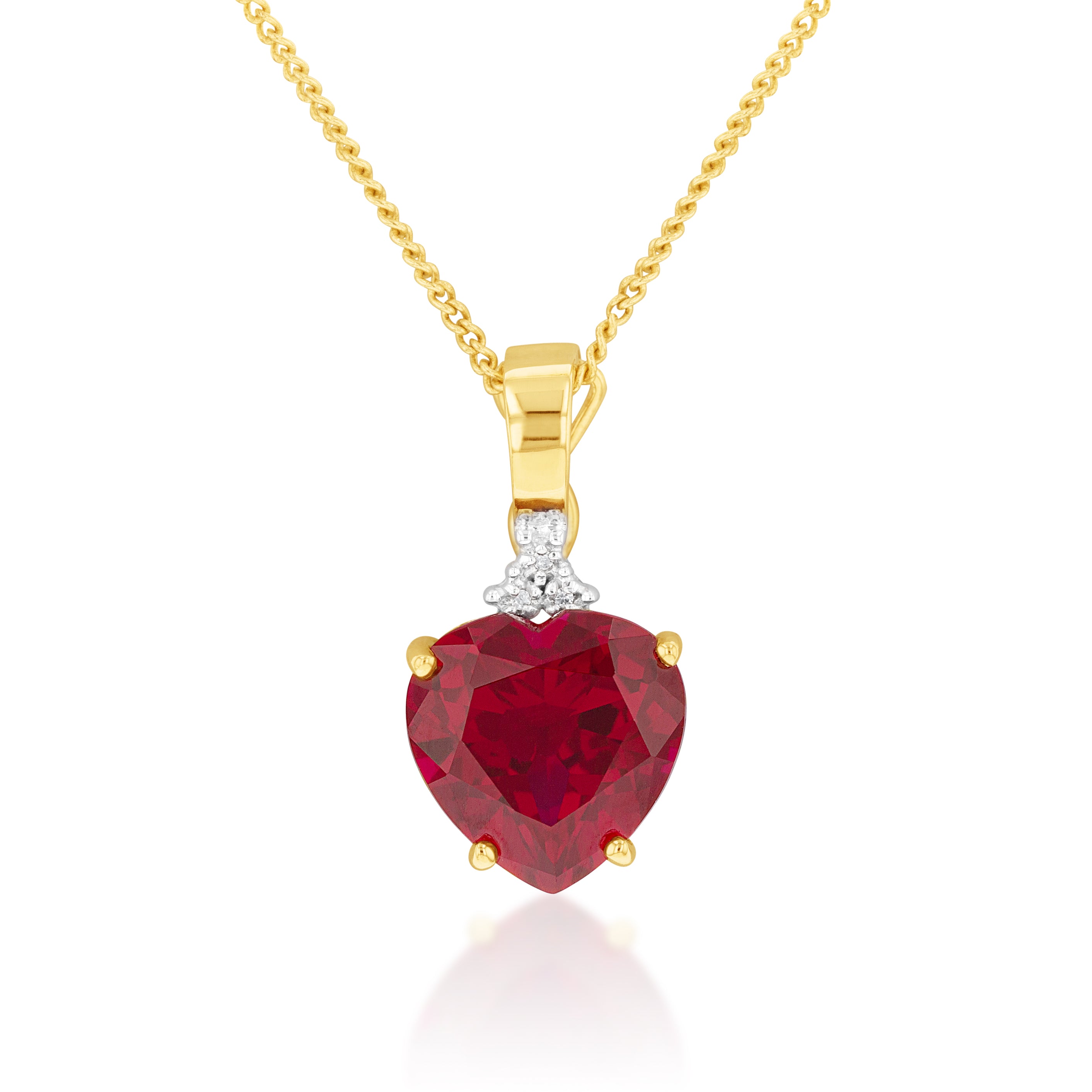 9ct Yellow Gold Created Ruby and Diamond Enhancer Pendant