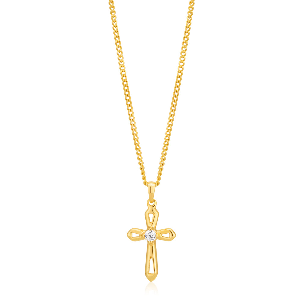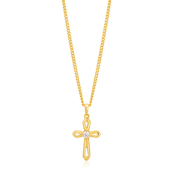 9ct Yellow Gold Cross Pendant with Cubic Zirconia