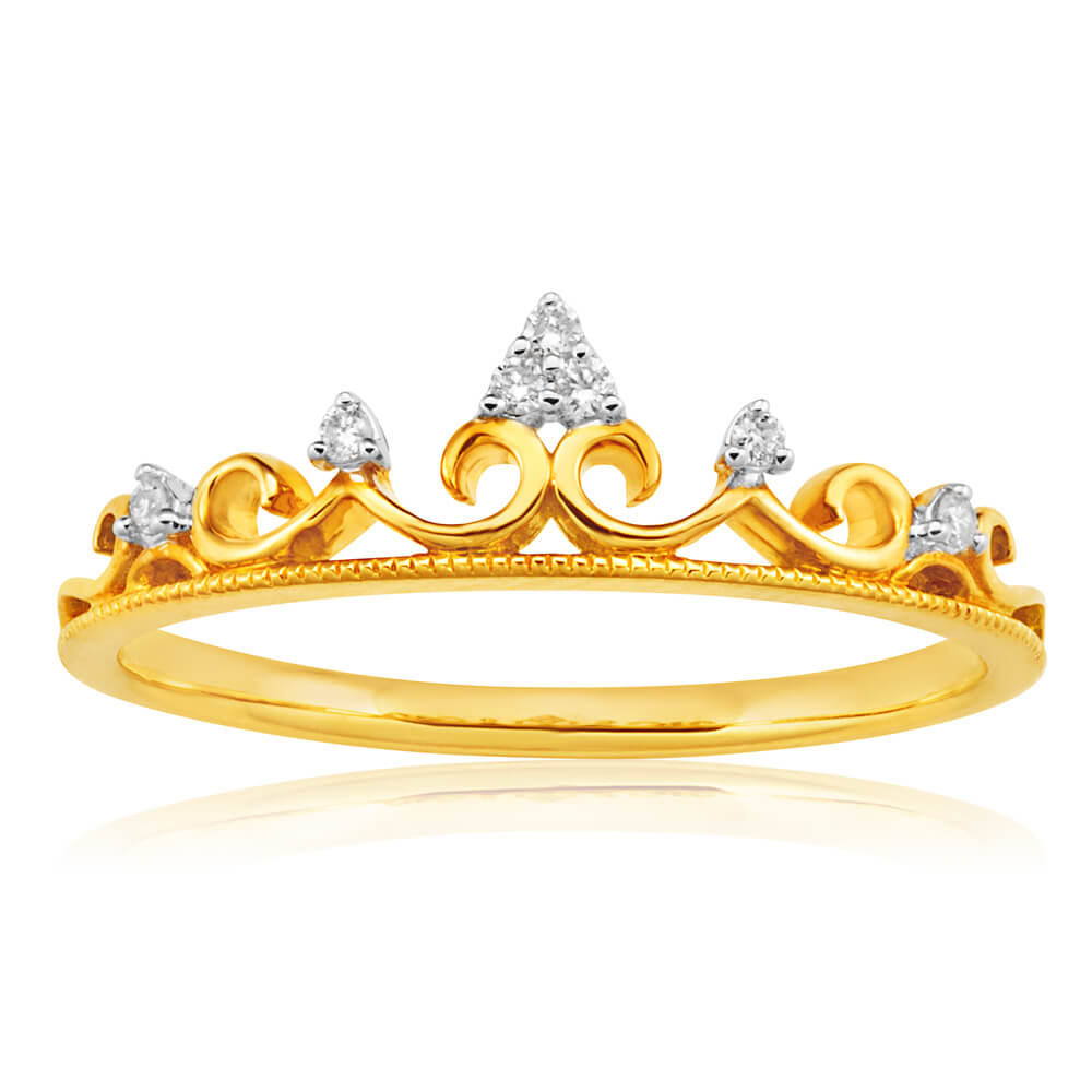 9ct Yellow Gold Crown Ring with 7 Diamonds