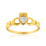 9ct Yellow Gold Cubic Zirconia Heart Claddagh Ring