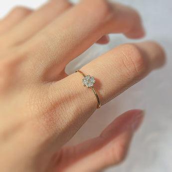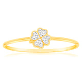 9ct Yellow Gold Diamond 4 Leaf Clover Ring with 12 Brilliant Diamonds