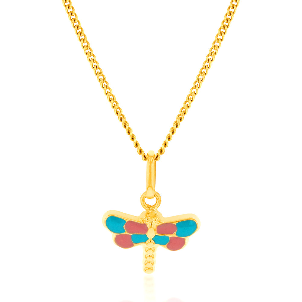 9ct Yellow Gold Dragonfly Enamel Pendant