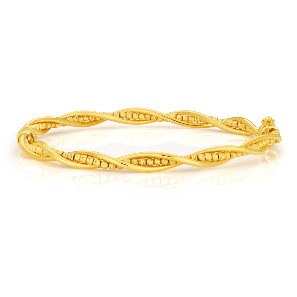 9ct Yellow Gold Fancy Twist Bead Bangle 9y