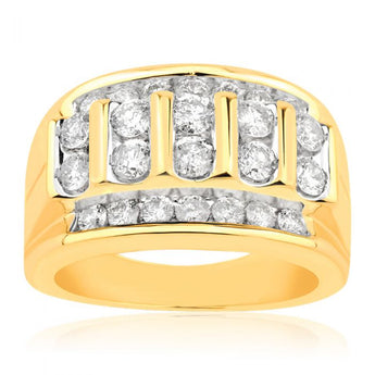 9ct Yellow Gold 2 Carat Diamond Gents Ring