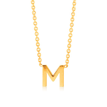 9ct Yellow Gold Initial "M" Pendant on 43cm Chain