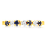 9ct Yellow Gold Natural Black Sapphire and 3 x Diamond Ring