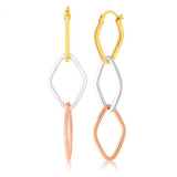 9ct Yellow Gold Silver Filled 3 Oval Ring Drop Earrings