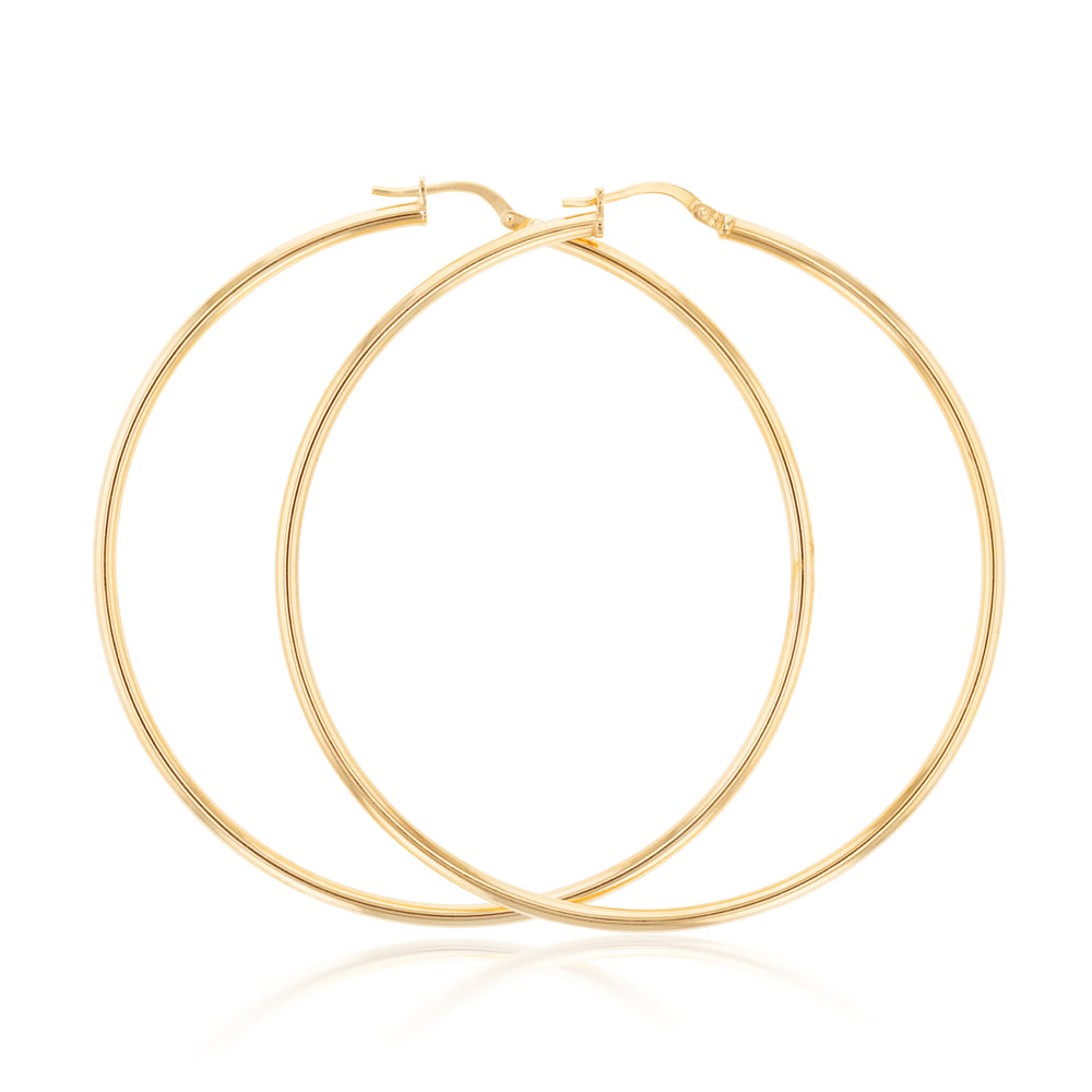 9ct Yellow Gold Silver Filled 60mm Plain Hoop Earrings