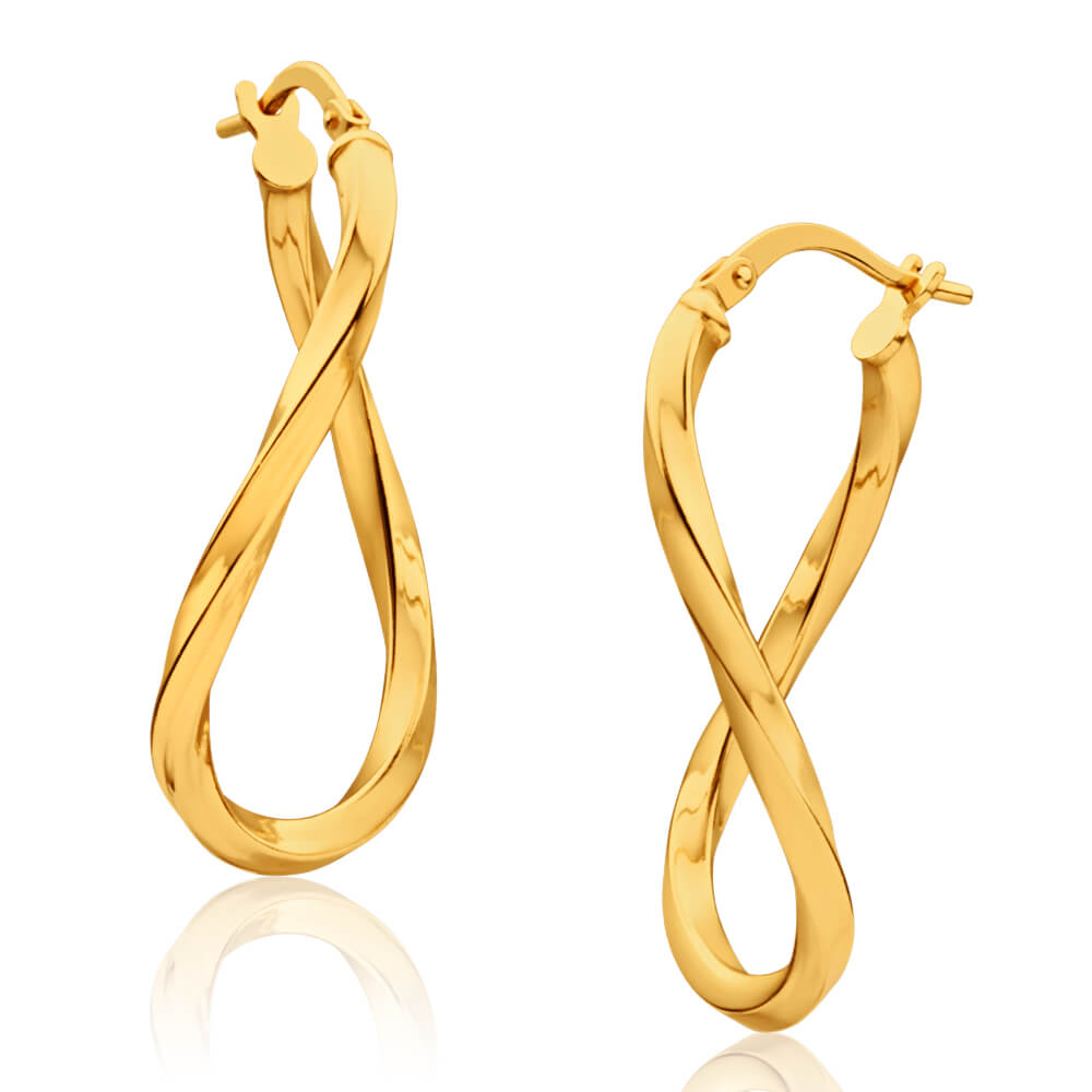 9ct Yellow Gold Silver Filled Oval with Twist 30mm Hoop Earrings