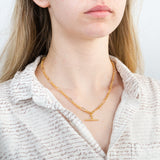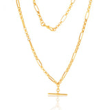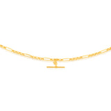 9ct Yellow Gold "T" Bar Pendant on 45cm Fancy Chain