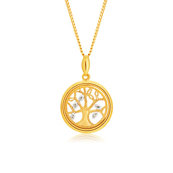 9ct Yellow Gold "Tree of Life" Diamond Pendant Set with 5 Brilliant Diamonds