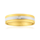 9ct Yellow Gold & White Gold Grooved Mens Diamond Ring