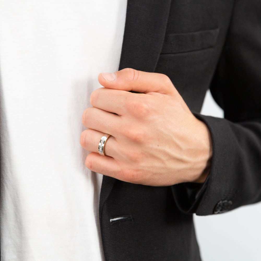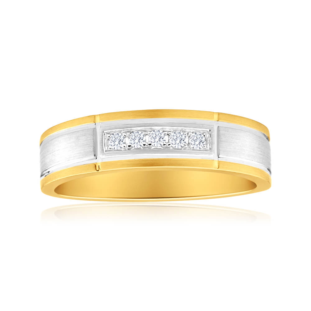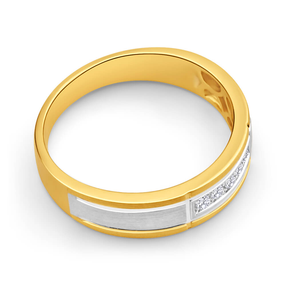 9ct Yellow Gold & White Gold Mens Ring With 0.1 Carats Of Diamonds