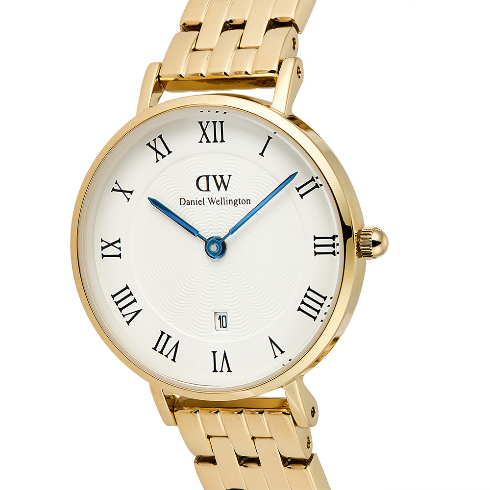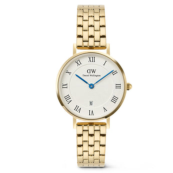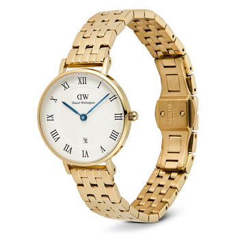 - Gold Plated Stainless-Steel Case and 5-Link Bracelet
