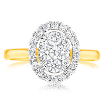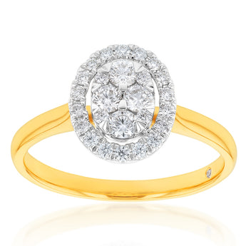 Flawless 1/2 carat 9ct Oval Yellow & White Gold Diamond Ring