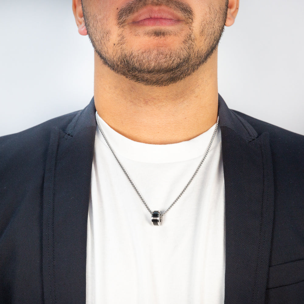 Forte Stainless Steel Black Round Pendant With 55cm Chain