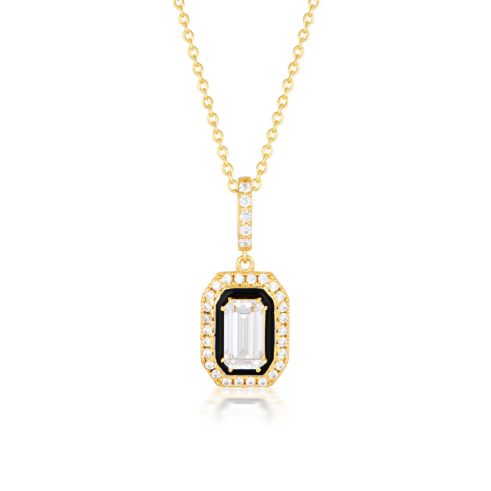 Georgini Reflection Gold Plated Sterling Silver + Black Retrospect Pendant With Chain