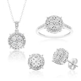 Sterling Silver 1/3 Carat Diamond Pendant Earring and Ring Set