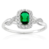 Sterling Silver Created Emerald and Zirconia Ring