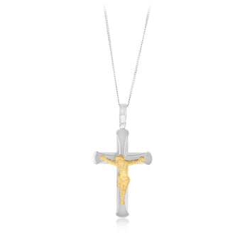 Sterling Silver Cross with 9ct Gold Jesus Crucifix Pendant