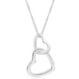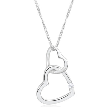 Sterling Silver Cubic Zirconia Double Open Heart Pendant With 45cm Chain
