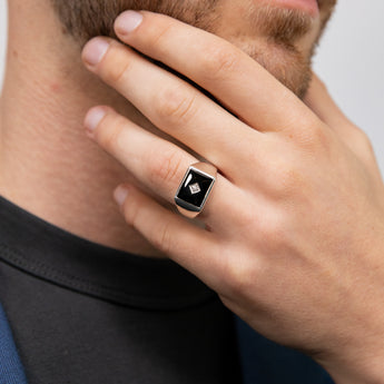 Sterling Silver Cubic Zirconia + Onyx Classic Ring