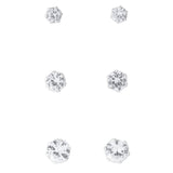Sterling Silver Multi Size Zirconia 3 Stud Earring Set