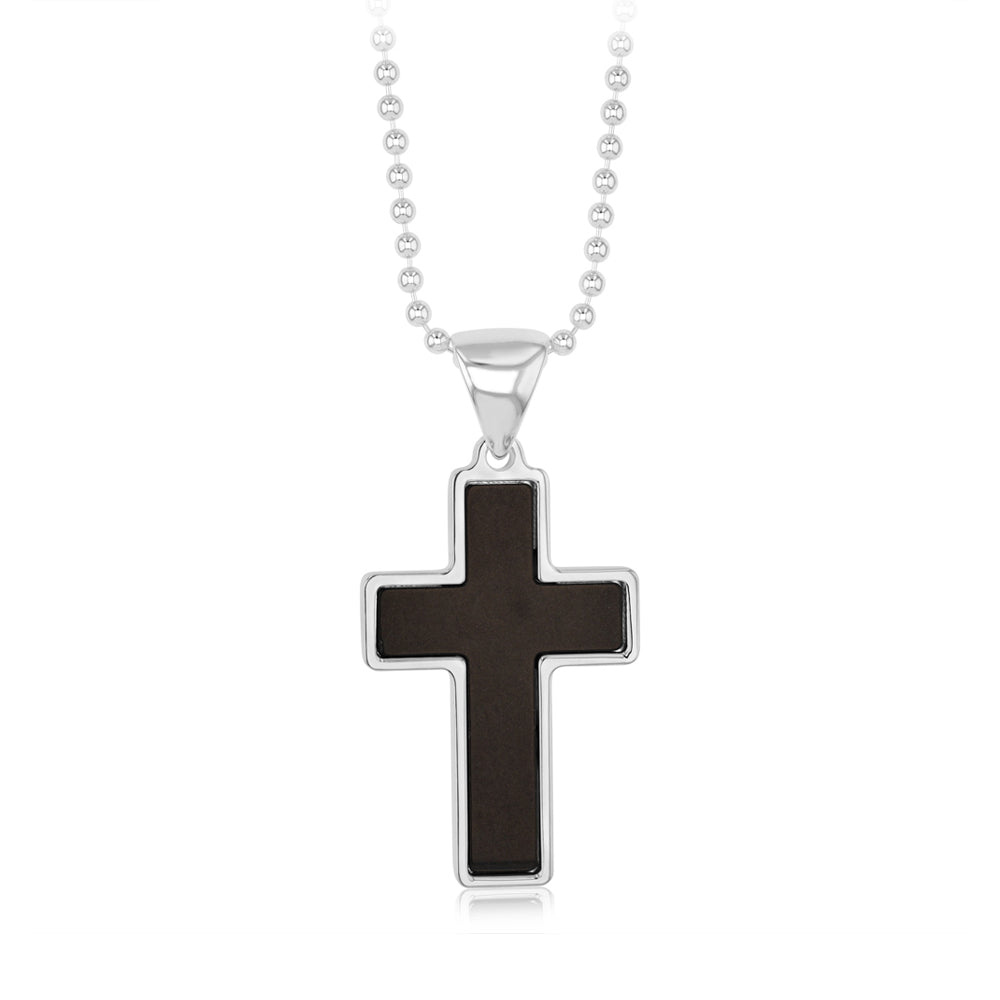 Sterling Silver Onyx Paste Black Cross On 50cm Ball Chain