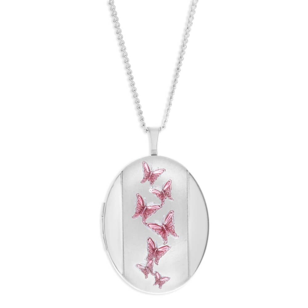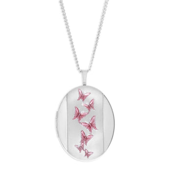 Sterling Silver Pink Butterfly Oval Locket 20mm
