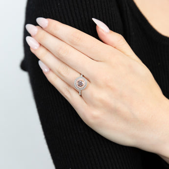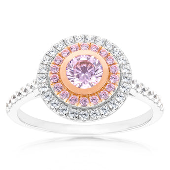 Sterling Silver Rhodium And Rose Gold Plated White And Pink CZ Round Ring